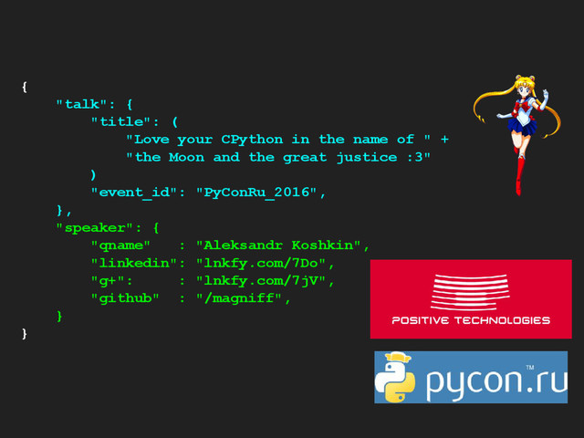 hacky.read_memory_in(id(100)+shift) for shift in range(sys.getsizeof(100)) ] >>> print(int_100_memory) [ 32, 18, 143, 0, 0, 0, 0, 0, # 9376288 # py_object(99) 128, 18, 143, 0, 0, 0, 0, 0, # py_object(101) 12, 0, 0, 0, 0, 0, 0, 0, # ob_refcnt 224, 228, 137, 0, 0, 0, 0, 0, # id(int) 1, 0, 0, 0, 0, 0, 0, 0, 100, 0, 0, 0 ] # 99 -> 100 -> 101 # 9376288 -> 9376336 -> 9376384 >>> hacky.write_memory_in(id(100)+40, 200) # ctypes.memset >>> 100 200 https://github.com/magniff/hacky