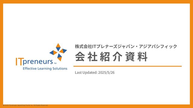 ITpreneurs Japan/Asia Pacific Inc. 〒102-0084 東京都千代⽥区⼆番町3番地 麹町スクエア1F 電話: 03-6380-8944 www.itpreneurs.co.jp [email protected] この資料のいかなる部分も、ITプレナーズ の事前の同意なく、コピー、複製、他の⾔語に翻訳することは許 可されません。この資料に含まれる情報は予告なく変更されることがあります。 この資料には、著作権で保護された占有情報が含まれています。 ITIL® and the Swirl logo are registered trademarks of the PeopleCert group. Used under licence from PeopleCert. All rights reserved. MarsLander®, Apollo 13 ‒ an ITSM case experience™ are registered Trade Marks of GamingWorks BV. The PMI Authorized Training Partner logo is a registered trademark of the Project Management Institute, Inc. PMI, PMP, PgMP, PfMP, PMI-ACP, PMI-PBA, PMI-RMP, PMI-SP and PMBOK are registered marks of the Project Management Institute, Inc. EXIN® is a registered trademark of EXIN. SIAM™ is a registered trademark of EXIN. Scrum.org™, Professional Scrum™, Professional Scrum Master™, Professional Scrum Product Owner™, Professional Scrum Trainer™, PSM™, PSPO™, PST™ are trademarks of Scrum.org and may be registered in the United States Patent and Trademark Office and in other countries. コピーライトについて Building intimacy and close working relationship with partners