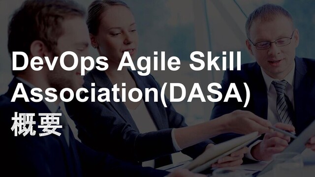 DevOps Agile Skills Association (DASA)に関する説明資料です。 ・DASAの活動 ・DASAの主なミッション ・DASA DevOps コンピテンシーフレームワーク ・DASA DevOps 知識エリア