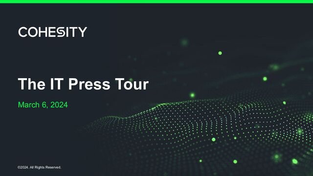 Portfolio To Create the Most Comprehensive Data Protection Solution in the Industry ✓ First to invent scale-out architecture ✓ Best-in-class speed, scale, and simplicity ✓ Industry-leading security, Gen AI and ML ✓ Modern multicloud architecture ✓ ~300 patents ✓ First in many areas of classic backup/recovery ✓ Broadest coverage of 500+ adapters for workloads ✓ Best-in-class capabilities for DBs, filesystems, tape ✓ Strong capabilities in cloud-native (30+ workloads) ✓ ~2,000 patents Joint Product Portfolio Backup on 3rd Party Storage Tape, Dell, NetApp, HPE, Pure, Hitachi, NEC, Fujitsu, VAST, and 100+ storage platforms Broad Workloads Sybase, DB2, MongoDB and 500+ other DBs and file systems Core Use Cases Scale, Speed, Simplicity for VMs, DBs Files, Servers Microsoft 365 Microsoft 365 Salesforce Google Workspace Portfolio Strengths Security & AI Services / Products Cohesity Veritas AWS Control Plane Azure Control Plane