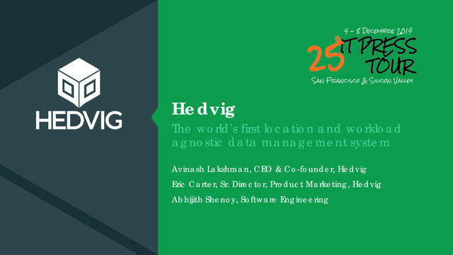 Hedvig presentation during the 25th edition of The IT Press Tour in California in December 2017