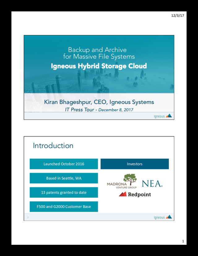 Igneous Systems presentation during the 25th edition of The IT Press Tour in California in December 2017