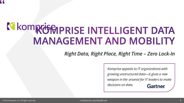 All rights reserved. Komprise CONFIDENTIAL. 8 • Doubled Sales: Unstructured data management becomes an enterprise IT priority • 115% YoY subscription revenue growth • New customer acquisition grew by 200% • Doubled data under management • 400+ KTP graduates • Product Innovation: Multisite, Deep Analytics Actions, Global File Index • Partner Momentum: Pure Storage, AWS, HPE, Qumulo, Azure • Industry Recognition: Thank you for covering the shift to storage-agnostic unstructured data management! • Included in Gartner Market Guide for Hybrid Storage, Hype Cycle for Storage and Data Protection • Awards: StorageNewsletter, TechTarget Finalist, CRN Storage 100, NAB Product of the Year
