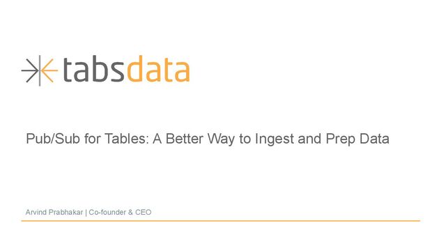 Attribution © 2025 Tabsdata, inc. All rights reserved. Mission To make Pub/Sub the standard for data propagation – enabling enterprises to move faster, innovate with confidence, and turn every dataset into a trusted asset. Vision A future where data integration no longer exists – just trusted datasets, instantly accessible across the enterprise, ready for AI, analytics, and action.