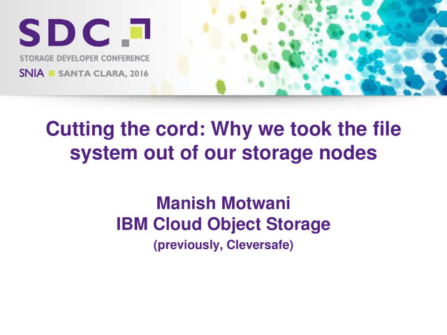 SNIA SDC 2016 - IBM Cloud Object Storage