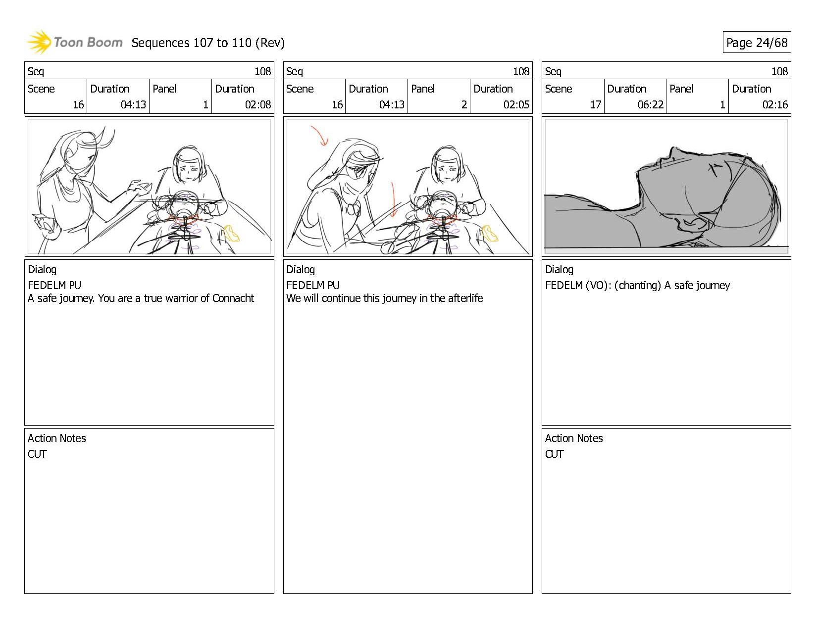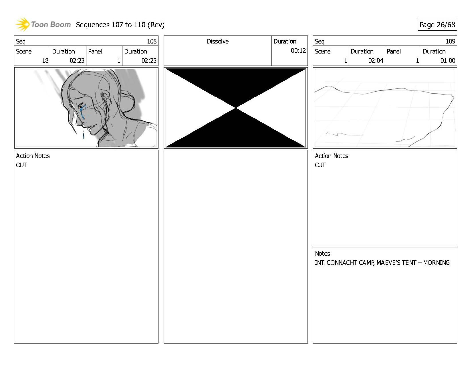 Boards made for the feature, Queen Maeve by Coyle Films. For context: Maeve has lost her daughter Finnie due to the war she started with the northern King Connor. Maeve was harsh on her daughter and had sent her out on a scouting mission that ended her life.