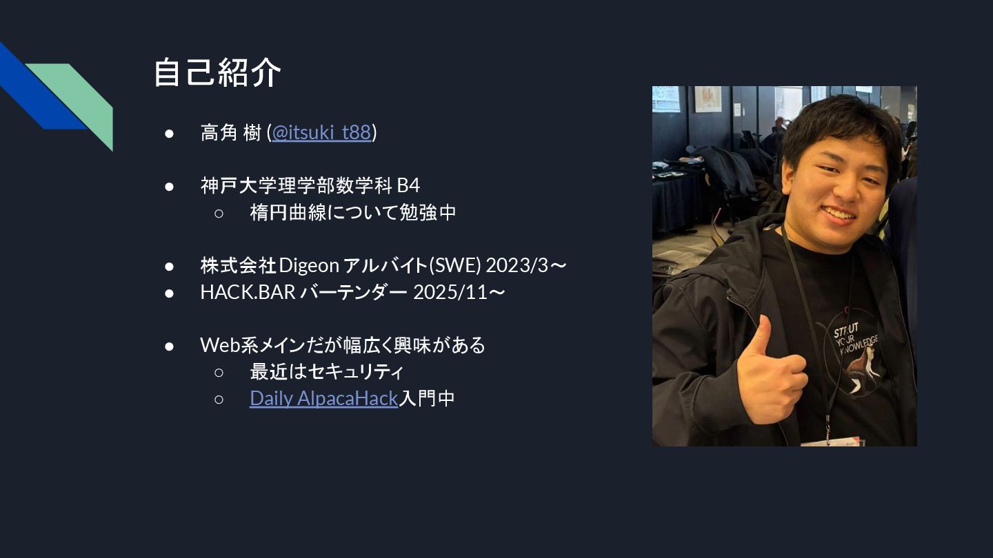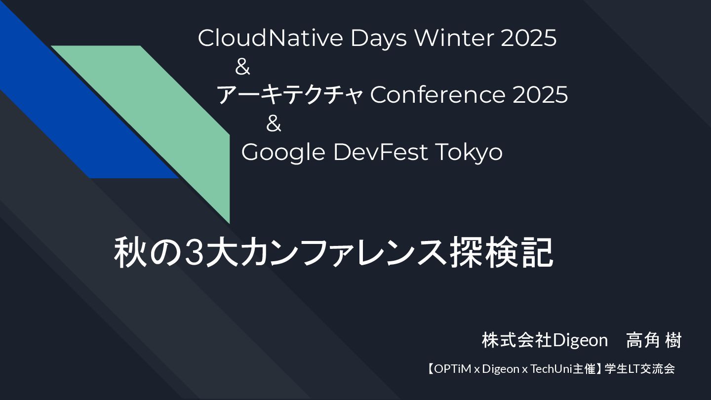 2025/12/14に 【OPTiM x Digeon x TechUni主催】 学生LT交流会(https://optim-kobe.connpass.com/event/376320/ ) で登壇したスライドです