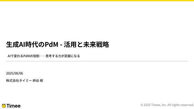 © 2025 Timee, Inc. All rights reserved. ⽣成AI時代のPdM - 活⽤と未来戦略