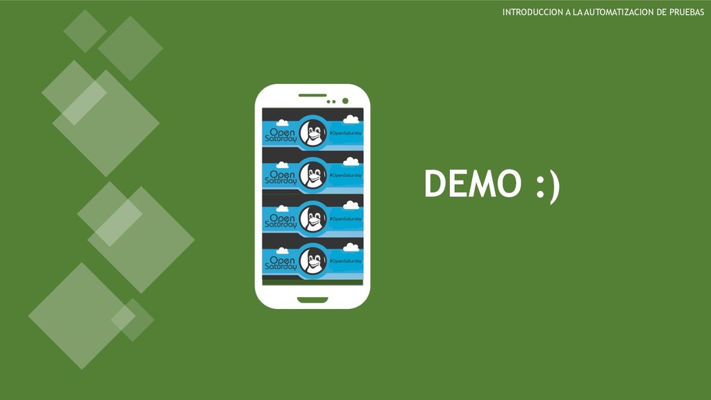 Esta charla en el Open Saturday Santiago 2017, trato sobre una introduccion a la automatizacion de pruebas de software, donde hablamos de estrategias, tecnicas y herramientas para efectuar las pruebas, tanto en dispositivos moviles como en web.
