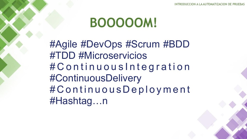 n t i n u o u s I n t e g r a t i o n #ContinuousDelivery # C o n t i n u o u s D e p l o y m e n t #Hashtag…n INTRODUCCION A LA AUTOMATIZACION DE PRUEBAS