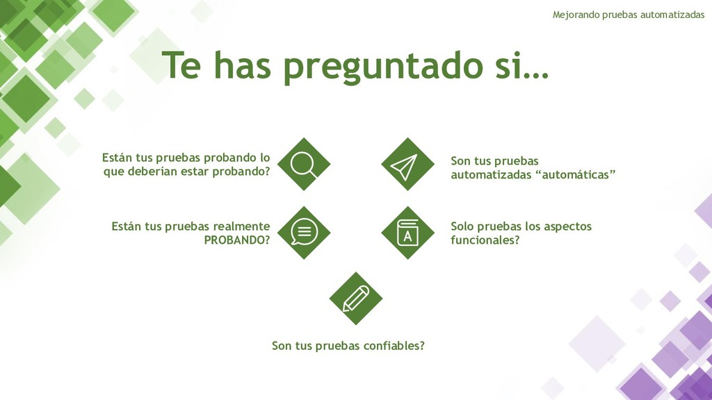 Las pruebas automatizadas deben ser confiables y rápidas. No tiene sentido que reporten un error cuando en realidad no existe, y los equipos deben saber si hay un problema con una funcionalidad tan pronto como sea posible. ¿Cómo podemos crear una estrategia robusta de automatización de pruebas y al mismo tiempo responder algunas de estas preguntas?
