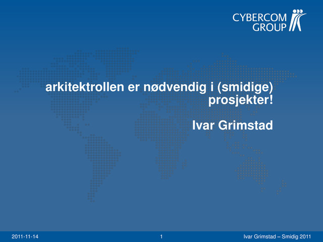 arkitektrollen er nødvendig i (smidige) prosjekter! Ivar Grimstad 2011-11-14 Ivar