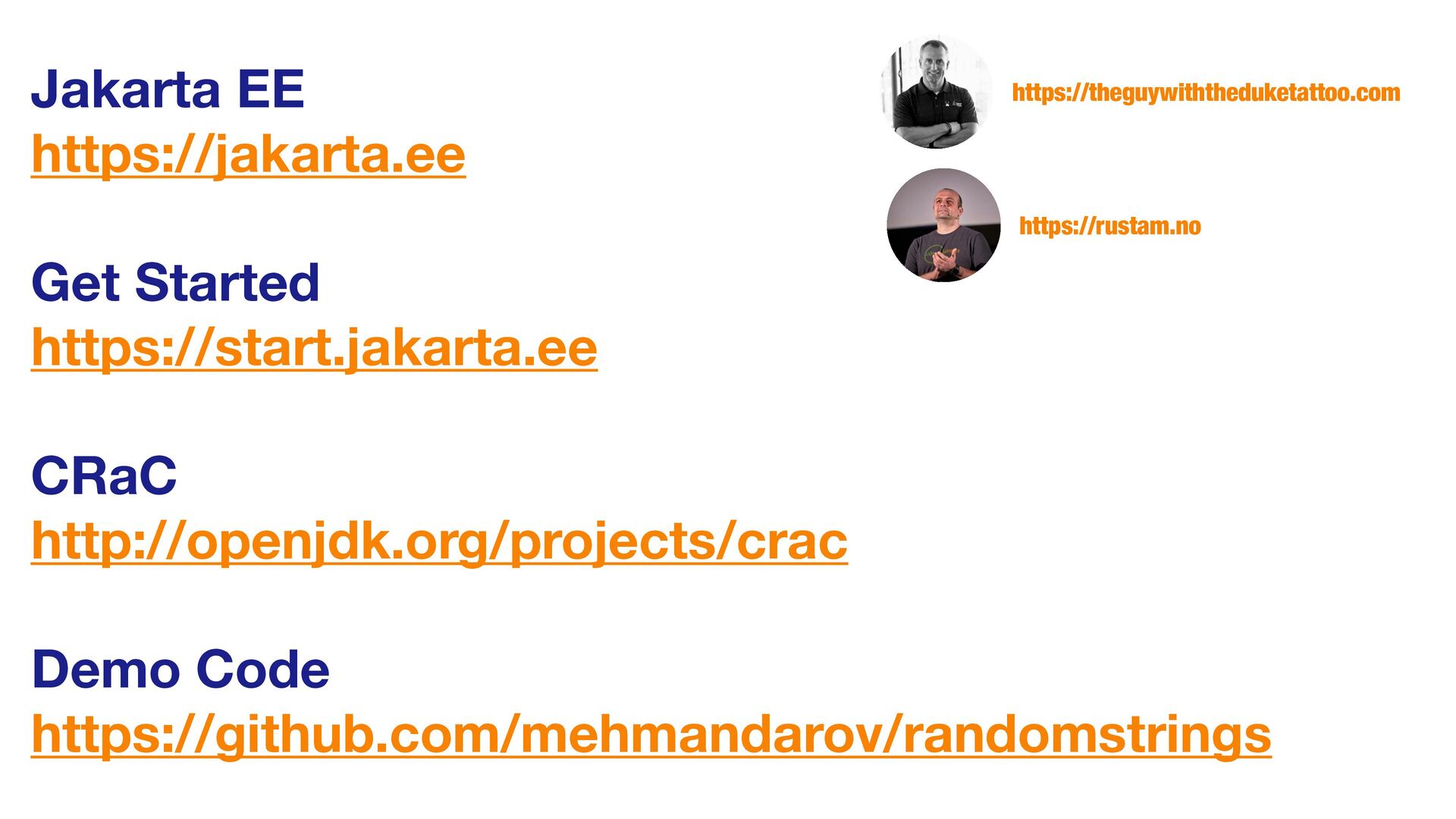 Join this session and follow Duke’s adventures in building modern and quick Jakarta EE applications with even faster start-up time. You will learn the basics of CRaC as well as gain an understanding of why it is a particularly good fit for Jakarta EE.