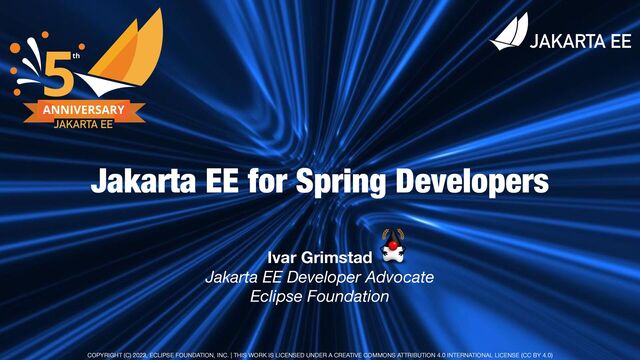Jakarta EE 9 changed its package namespace from `javax.*` to `jakarta.*`. This may sound like a trivial change that mostly affects Jakarta EE. So, why should Spring developers care? As it turns out, the namespace changes ripple throughout the entire Java ecosystem. And Spring is no exception. Spring Framework 6 and Spring Boot 3 raise their baseline to Jakarta EE 9 API level which is supported by Tomcat 10 and Jetty 11 for example. Attending this session will teach you how to make this migration as smoothly as possible. A live coding demo will take you through the steps involved, and point out where to pay special attention. We will also briefly examine some of the changes introduced in **Jakarta EE 10** that will prepare you for what to expect from Spring 6.x. Some pointers to what we can expect from Jakarta EE 11 will also be given.