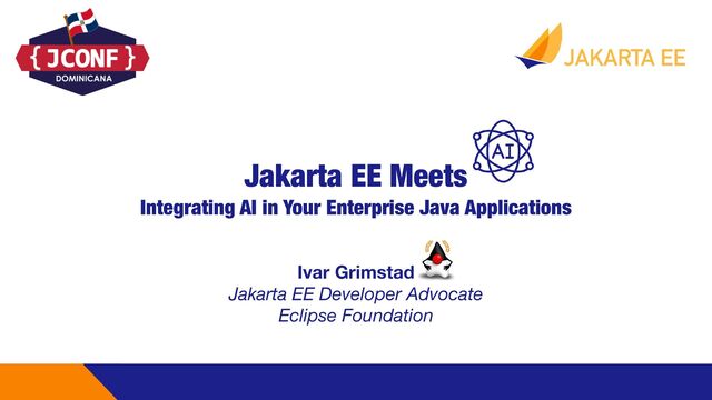 LICENSED UNDER A CREATIVE COMMONS ATTRIBUTION 4.0 INTERNATIONAL LICENSE (CC BY 4.0) Jakarta EE https://jakarta.ee Get Started https://start.jakarta.ee Demo Code https://github.com/ivargrimstad/duke-ai More https://jakarta.ee/community/developer-advocate https://theguywiththeduketattoo.com