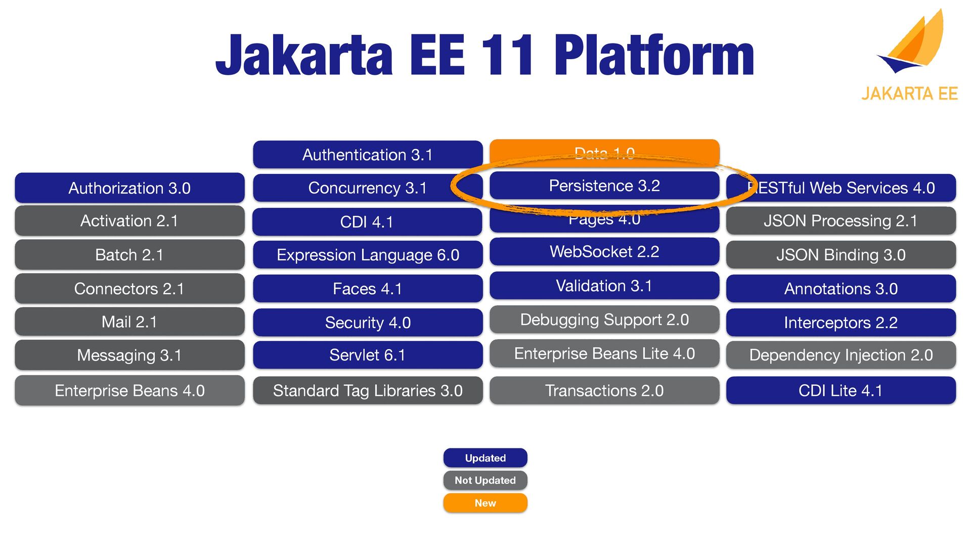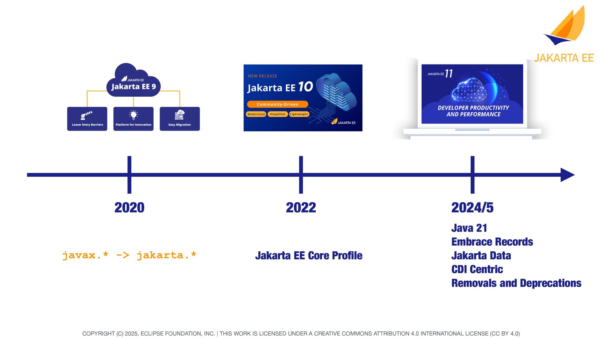 The Jakarta EE 11, with features for increasing performance and developer productivity, such as support for virtual threads and the new Jakarta Data specification.
