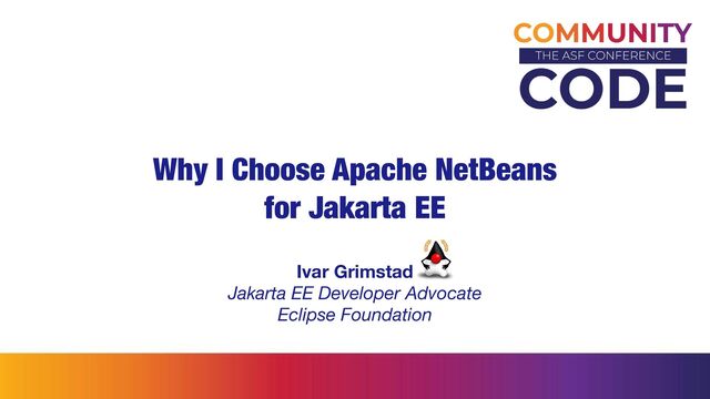 In this session I will show you exactly why NetBeans is the best IDE for Jakarta EE. I promise there will be lots of demos and code samples.