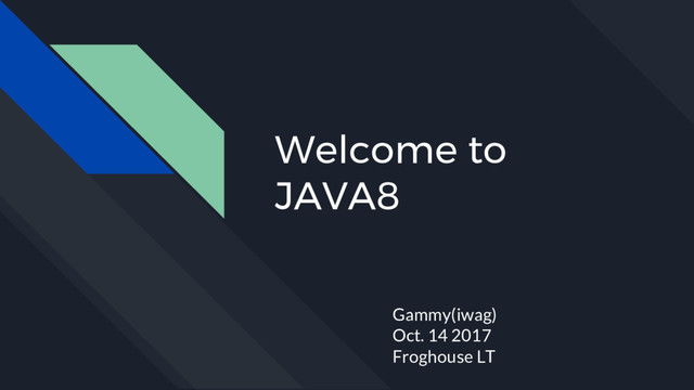 is static type language ◦ => FunctionalInterface • Many buildin interfaces in java.util.function Function<TypeA, TypeB> f = (Type a) -> ( (TypeB)f(a)); // TypeA to TypeB BiFunction<TypeA, TypeB, TypeC> g=(TypeA a, TypeB b) -> ((TypeC)f(a,b)