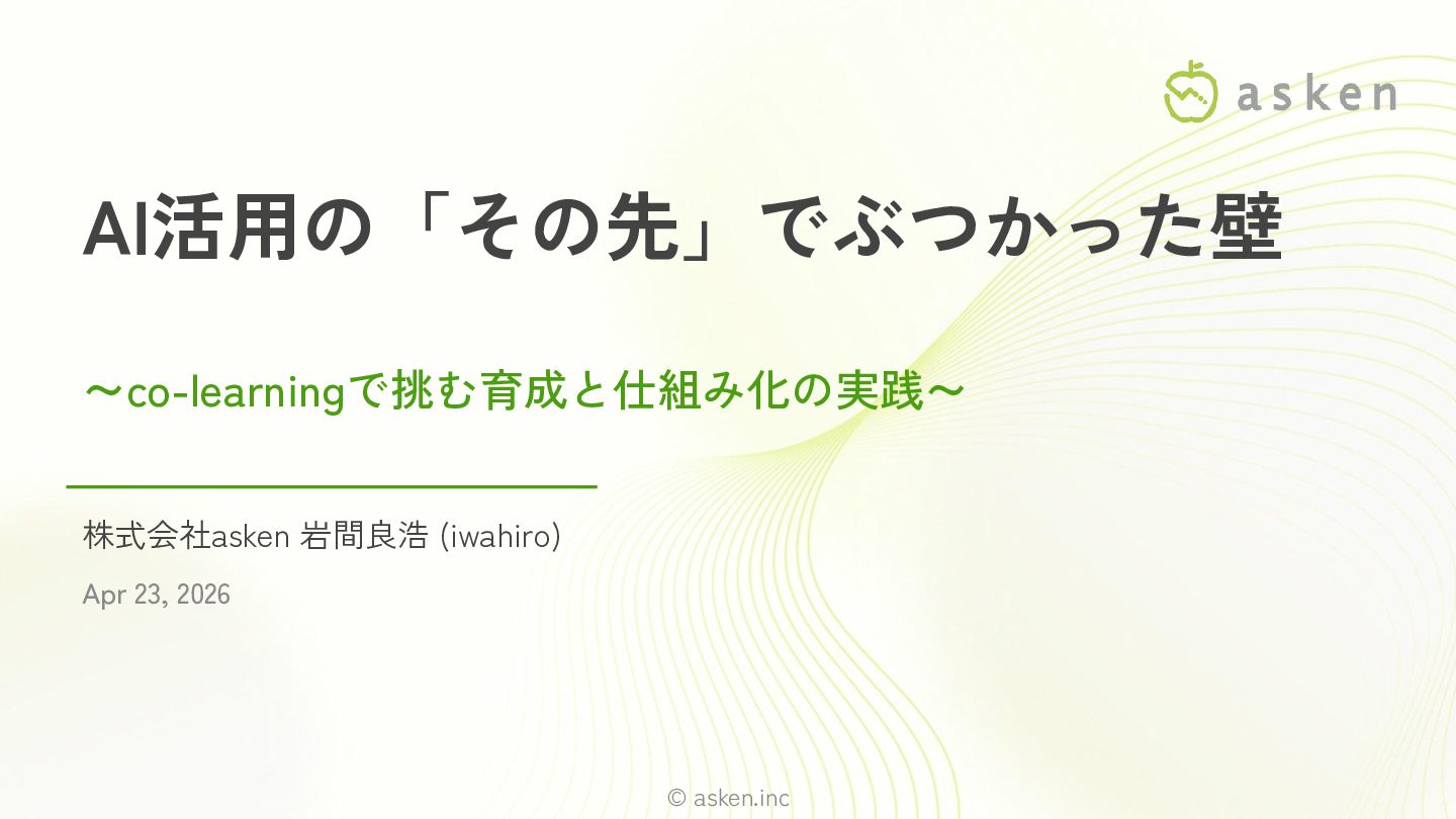 開発組織を左右するAIの活かし方|アウトカムを最大化する育成×仕組み化とは https://developer-productivity-engineering.connpass.com/event/387917/