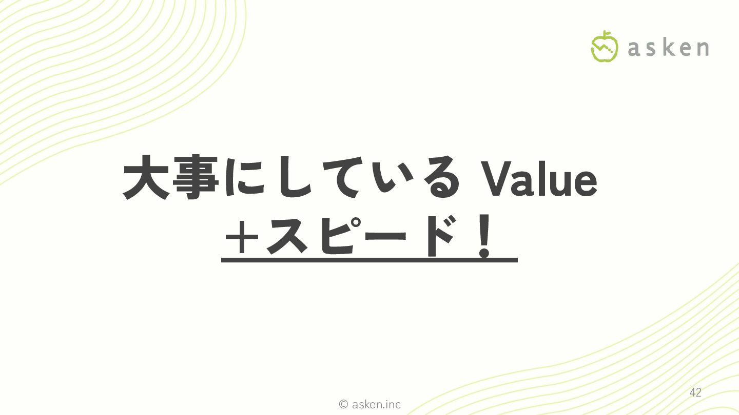 © asken.inc 大事にしている Value +スピード! 42
