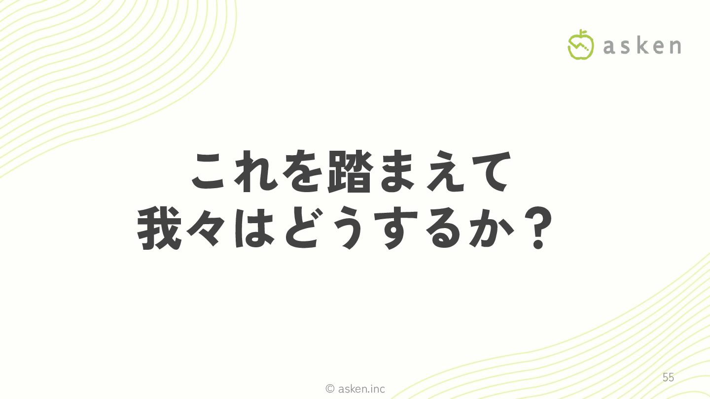 © asken.inc これを踏まえて 我々はどうするか? 55