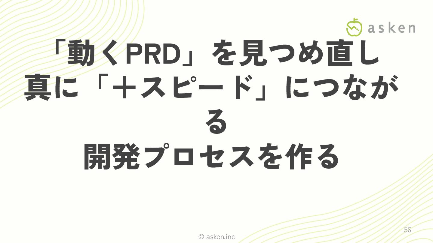© asken.inc 「動くPRD」を見つめ直し 真に「+スピード」につなが る 開発プロセスを作る 56