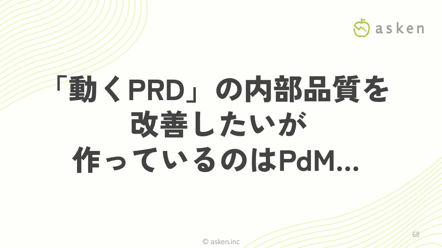 © asken.inc 「動くPRD」の内部品質を 改善したいが 作っているのはPdM… 68