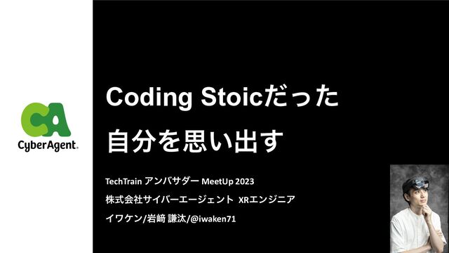 Coding Stoicͩͬͨ ࣗΛࢥ͍ग़͢ TechTrain Ξϯόαμʔ MeetUp 2023 גࣜձࣾαΠόʔΤʔδΣϯτ XRΤϯδχΞ Πϫέϯ/ؠ㟒