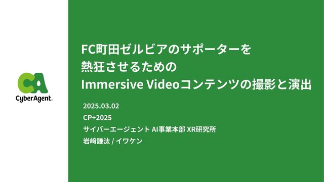 03 . 02 CP+ 2025 サイバーエージェント AI事業本部 XR研究所 岩﨑謙汰 / イワケン