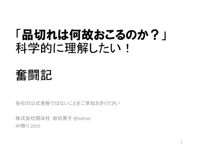 まだまだ道半ばですが、品切れのメカニズムを探っていく中で徐々にわかってきたことをお知らせするとともに、XP祭りに参加してくださっている皆さんを始め、このスライドを見てくださった方からの品切れ防止策のアイディアがあればお聞きしたいと思って発表しました!