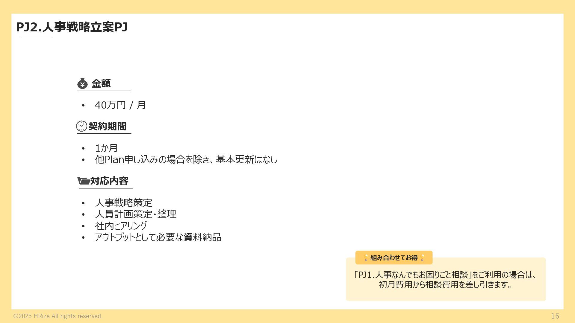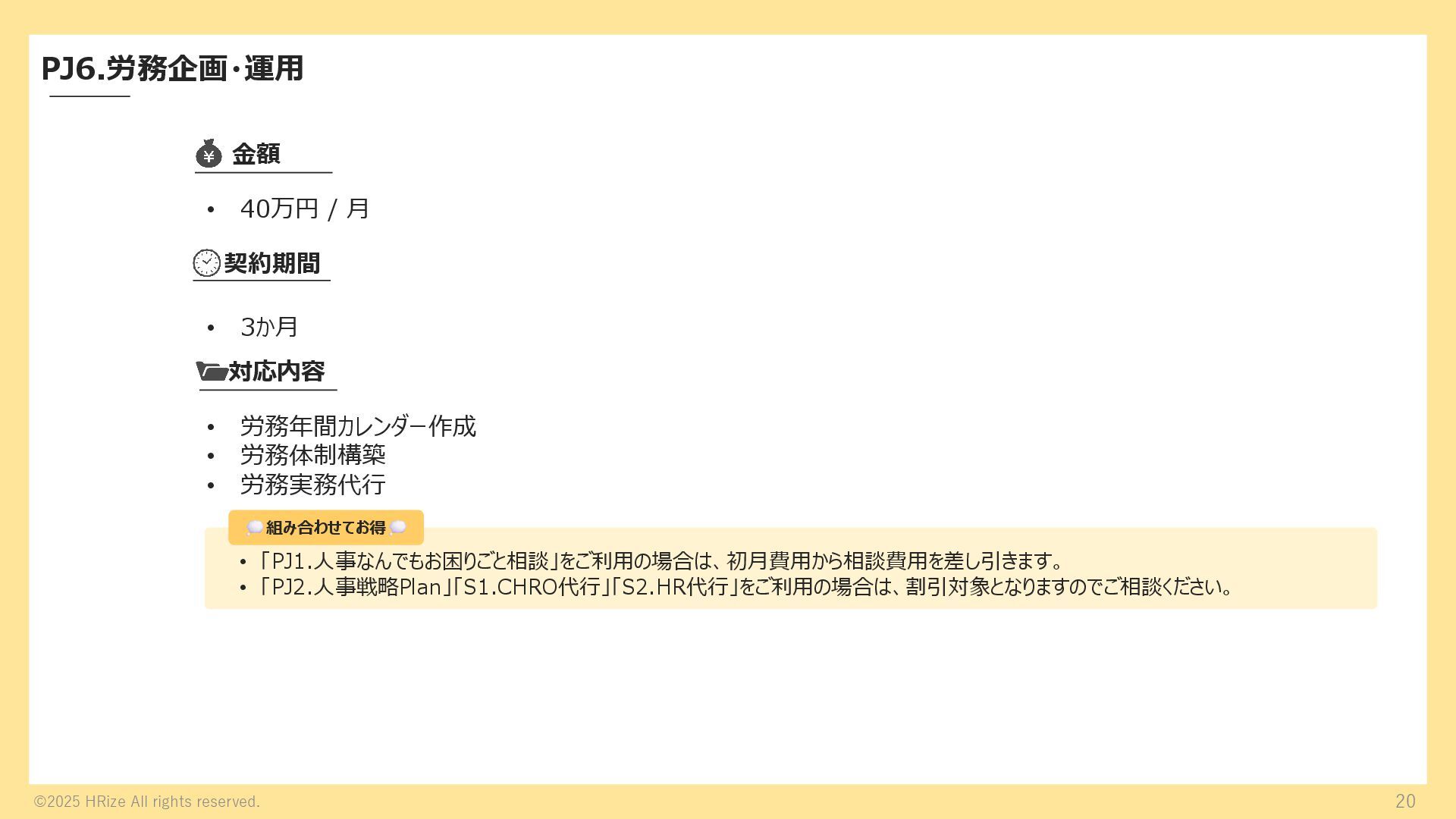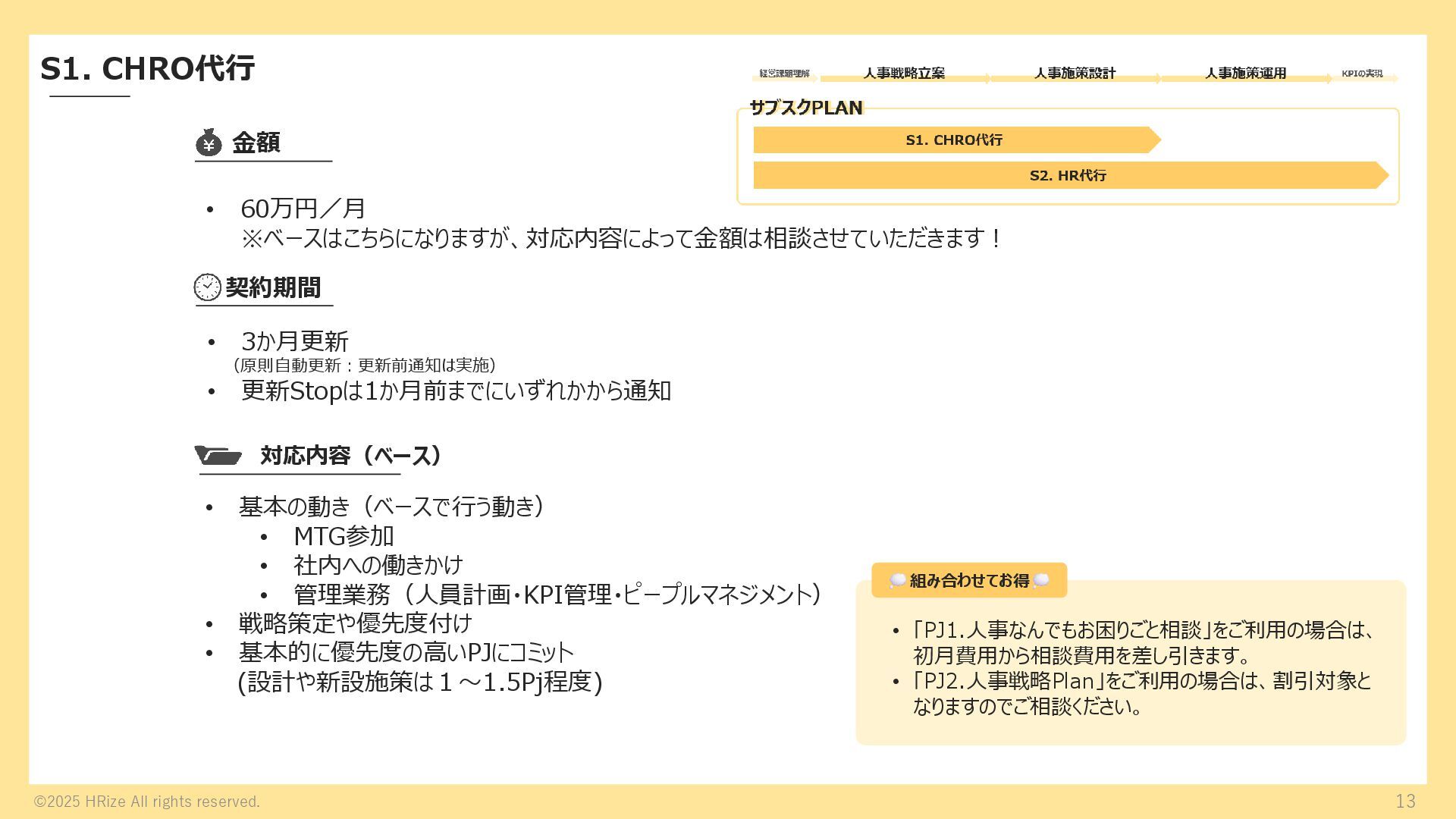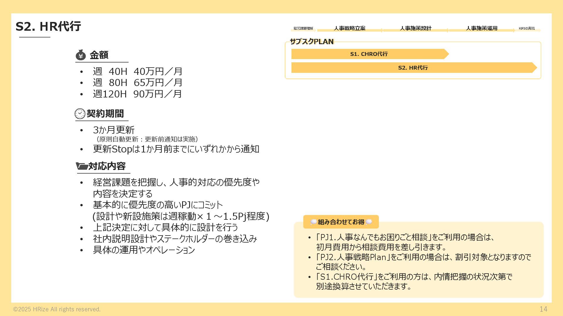 重工系メーカー • 1500人規模の勤怠 • 給与・社会保険管理 • 労働組合対応窓口 2016年2月 - 重工系メーカー 本社 採用課 • 年間300人の新卒採用(機械・電気電子工学) × 5年 • 現場受け入れインターンシップ年間150名 2021年10月 - メタバース開発事業 スタートアップ • Vision、改定に伴うMissionチューニングと人事制度全体構築 • 中途採用 • 15人~30人 2023年5月 - Vtuber運営事業 スタートアップ • 中期経営計画策定メンバーとして人事領域担当 • 人事制度(等級、目標管理、評価、報酬)策定 • 中途採用立ち上げ • 25人~50人 2024年6月 - 株式会社HRize 創業 • HRパートナー事業 従来の慣習であった「学校推薦採用」を廃止 採用目標の達成に向けて、会社で従来採用の肝とされてい た「学校推薦採用」を社内の批判を受けながらも廃止。廃 止後、採用目標を大幅に達成。 人事制度を3ヶ月で設計 人事セオリーの徹底と、経営陣との密なコミュニケーションに よって、人事制度を3ヶ月のスピードで設計。その後の運用も 経験。 人材要件と採用プロセスの見直しで採用目標達成 それまでなんとなくで進んでいた採用プロセスを本質的に見直 し。ジョイン前に半年に1名の採用だったところを、ジョイン後 半年で3名の採用に成功。 採用 採用 人事 制度