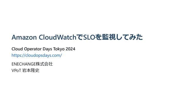 Amazon CloudWatchでSLOを監視してみた Cloud Operator Days Tokyo 2024 https://cloudopsdays.com/ ENECHANGE株式会社 VPoT