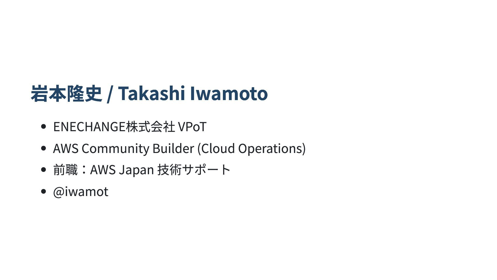 1. 岩本隆史 / Takashi Iwamoto ENECHANGE株式会社 VPoT AWS Community Builder (Cloud