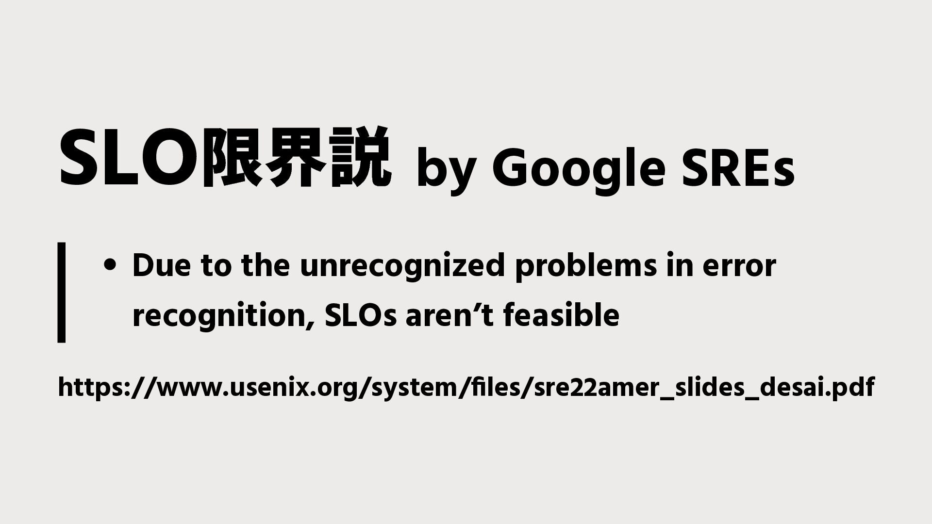 aren’t feasible https://www.usenix.org/system/files/sre22amer_slides_desai.pdf SLO by Google SREs