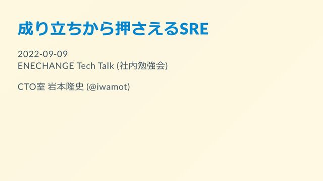 成り立ちから押さえるSRE 2022-09-09 ENECHANGE Tech Talk (社内勉強会) CTO室 岩本隆史 (@iwamot)