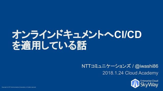 Copyright © NTT Communications Corporation. All rights reserved. オンラインドキュメントへCI/CD を適用している話