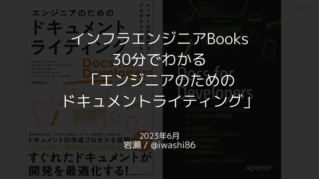 インフラエンジニアBooks 30分でわかる「エンジニアのためのドキュメントライティング」( https://infra-eng-books.connpass.com/event/282031 ) の講演資料です。