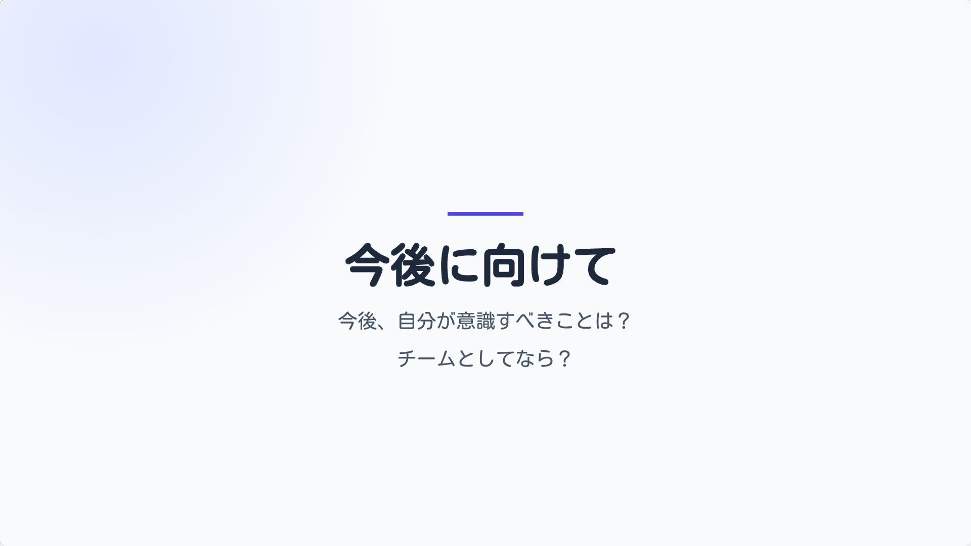 今後に向けて 今後、自分が意識すべきことは? チームとしてなら?