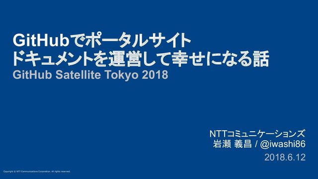Copyright © NTT Communications Corporation. All rights reserved. GitHubでポータルサイト ドキュメントを運営して幸せになる話