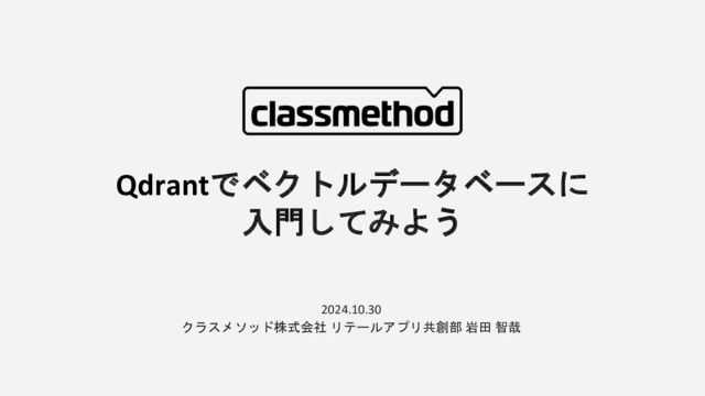 2024.10.30 クラスメソッド株式会社 リテールアプリ共創部 岩田 智哉 Qdrantでベクトルデータベースに 入門してみよう