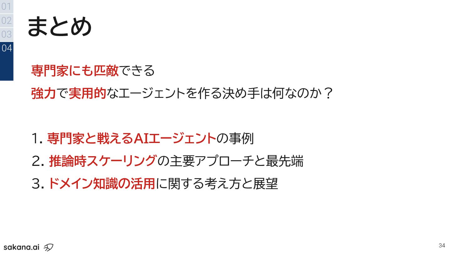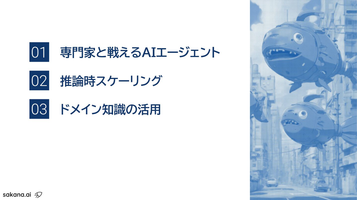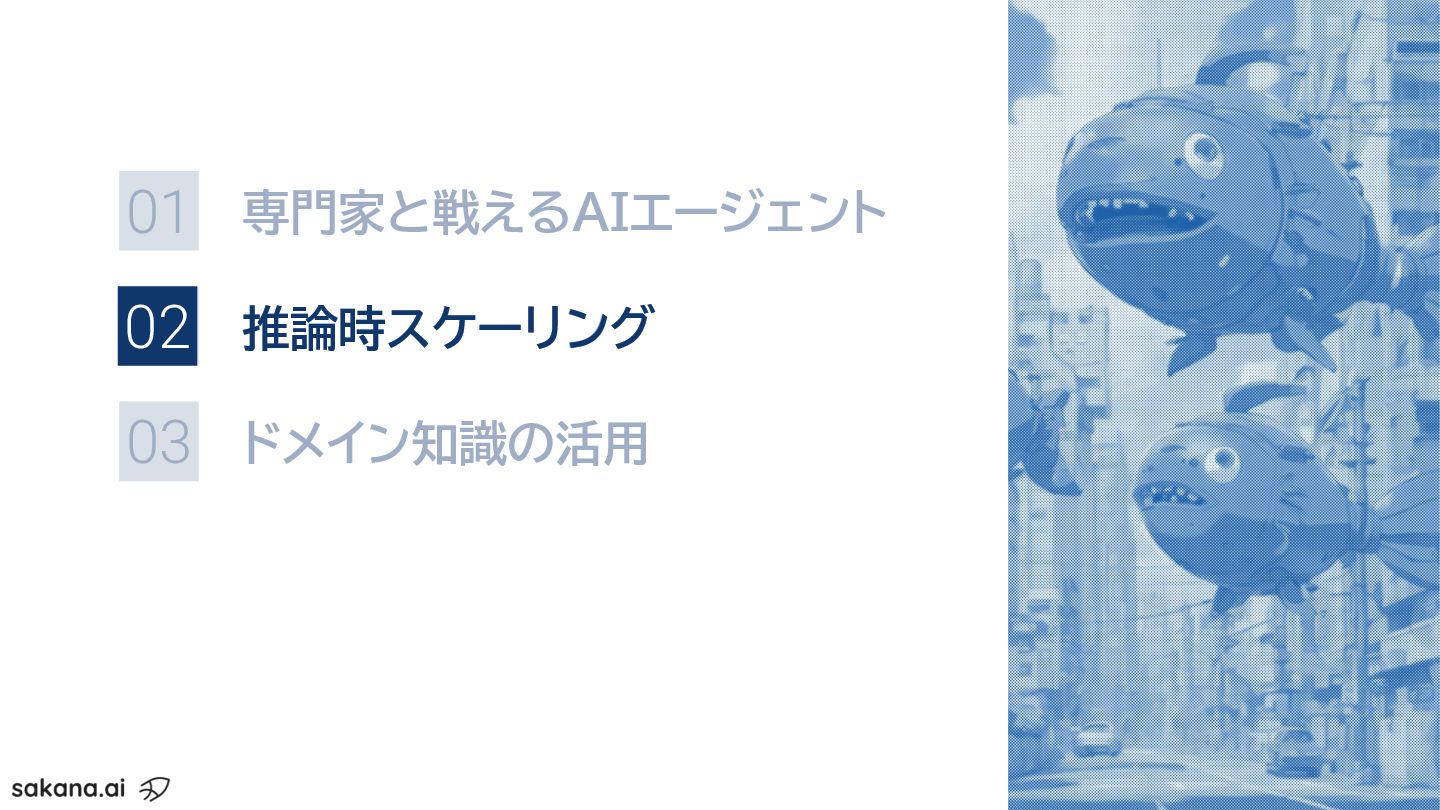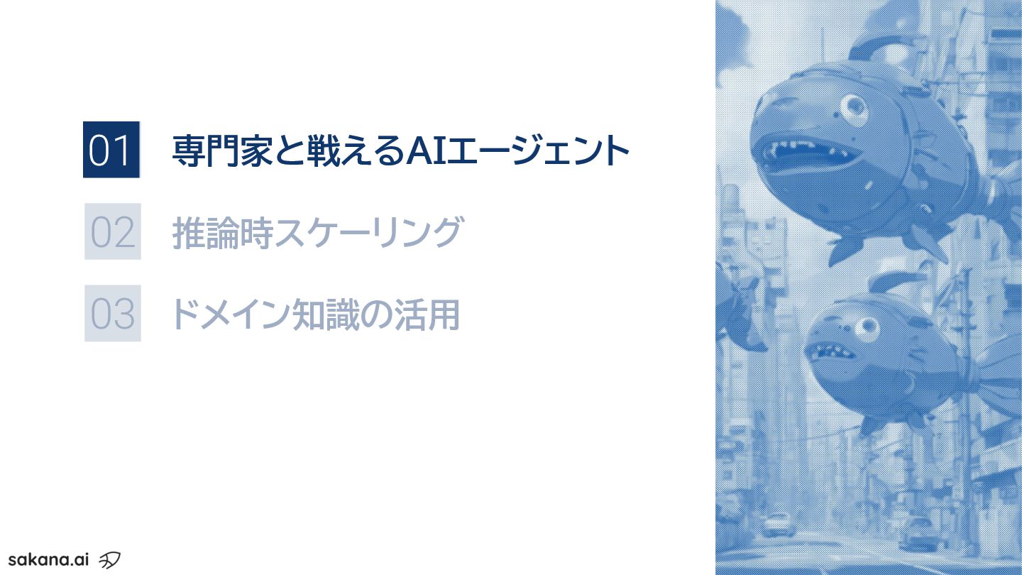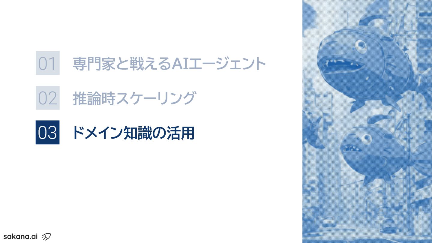 専門家と戦えるAIエージェント 推論時スケーリング ドメイン知識の活用 専門家と戦えるAIエージェント 01 02 03