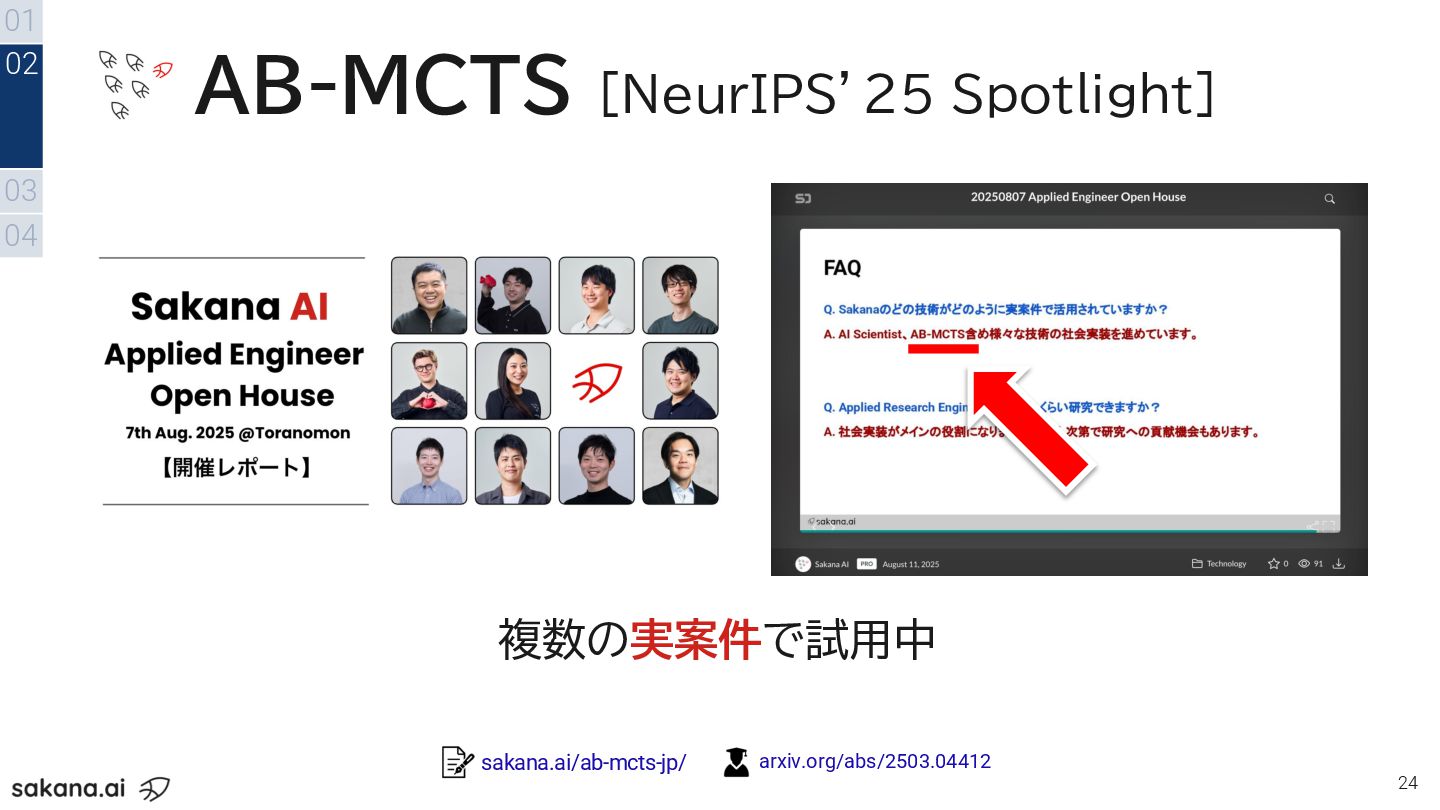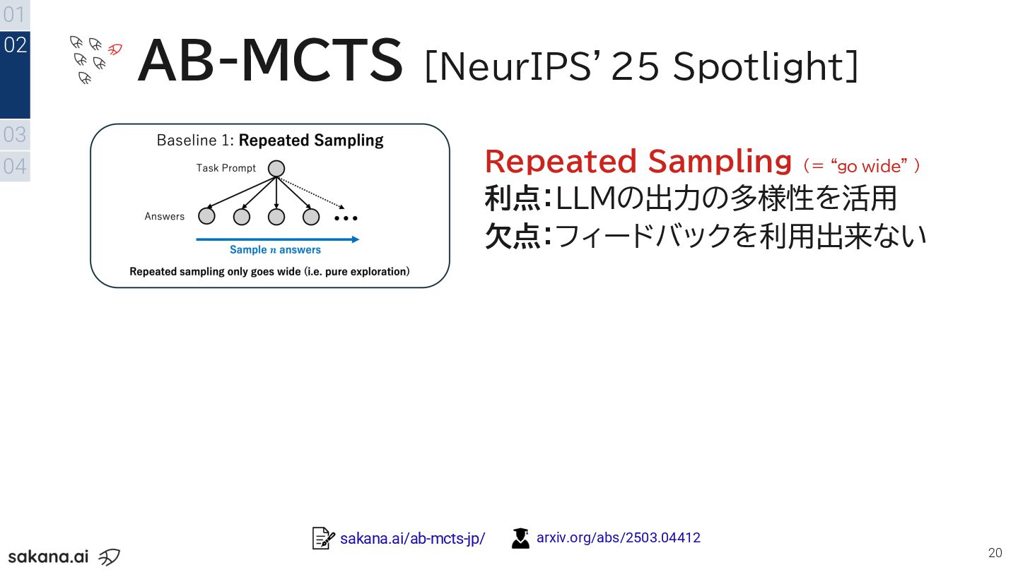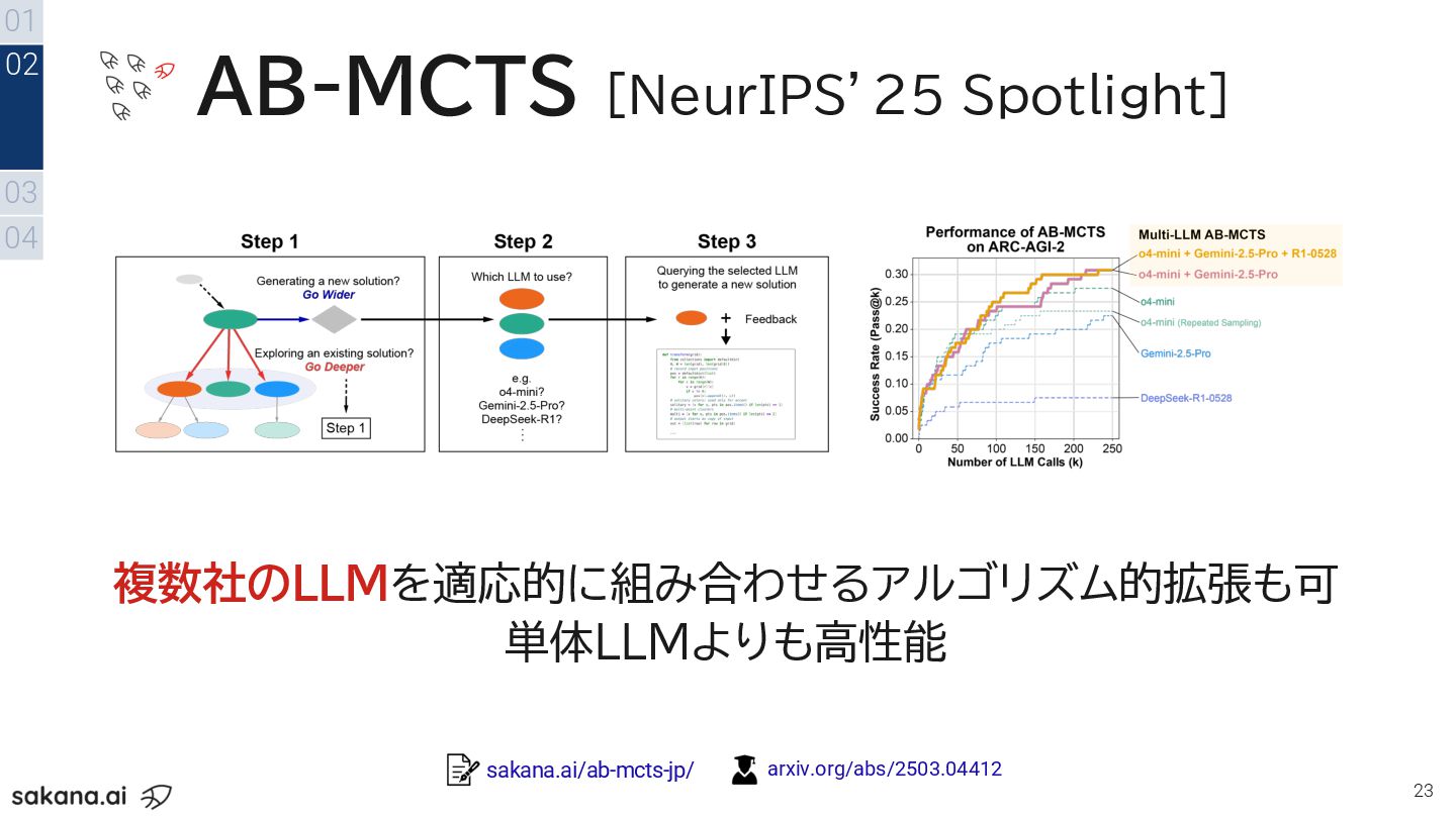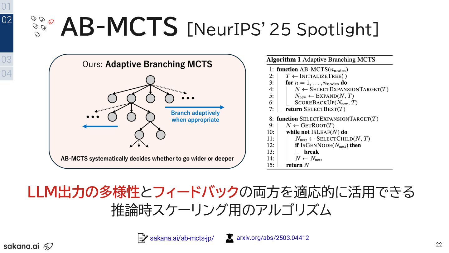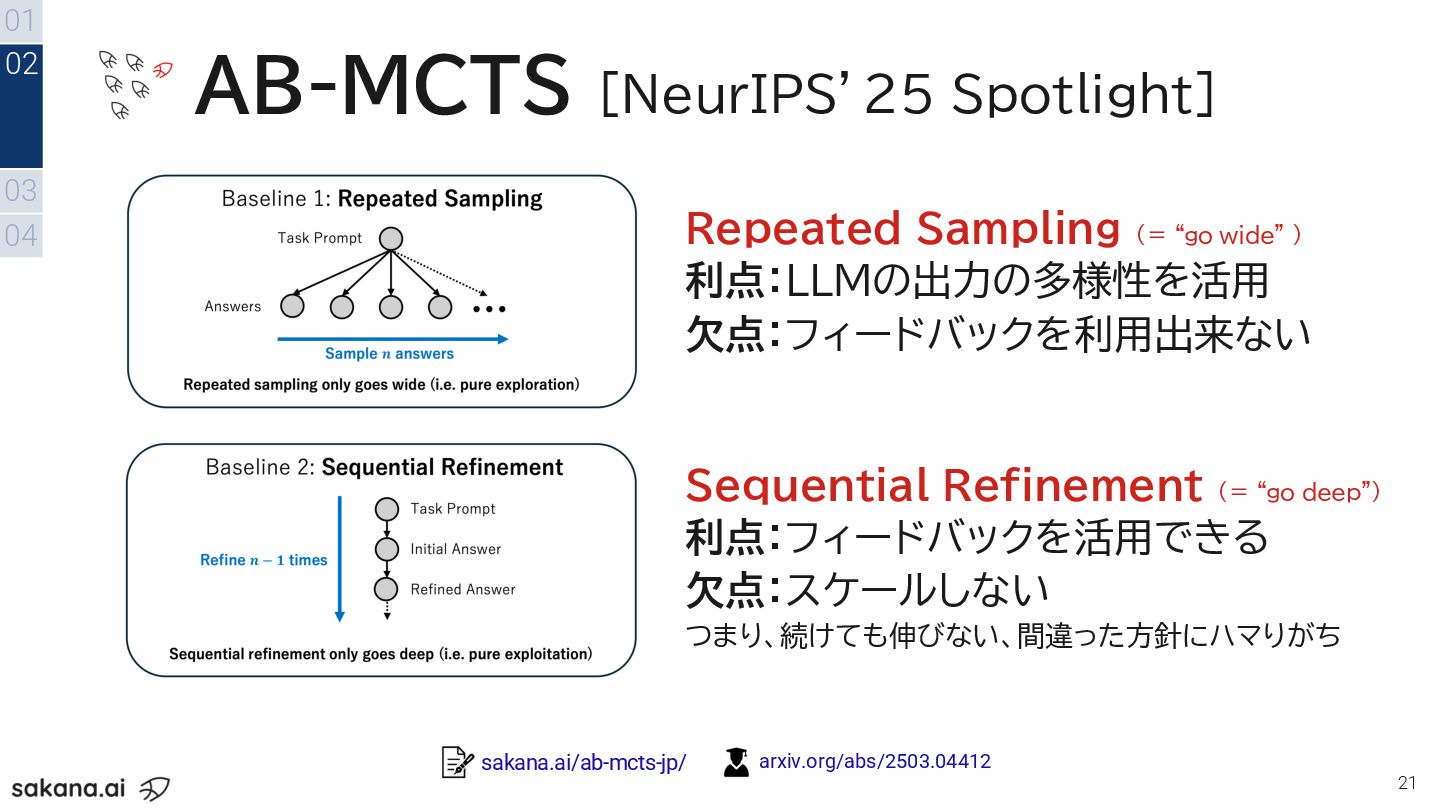 AB-MCTS [NeurIPS’25 Spotlight] 23 01 03 04 02 sakana.ai/ab-mcts-jp/ arxiv.org/abs/2503.04412