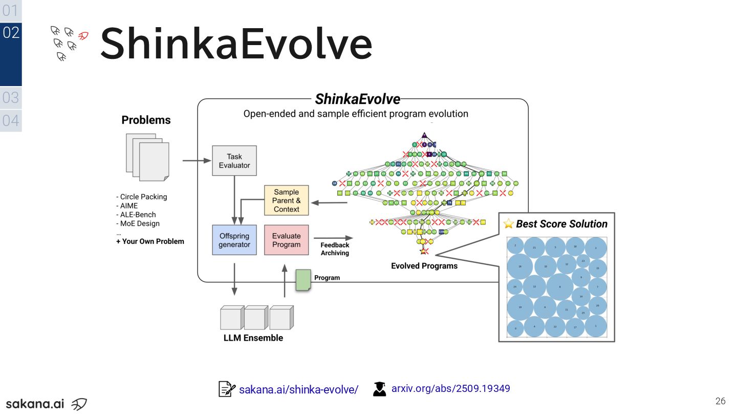 26 01 03 04 02 ShinkaEvolve sakana.ai/shinka-evolve/ arxiv.org/abs/2509.19349