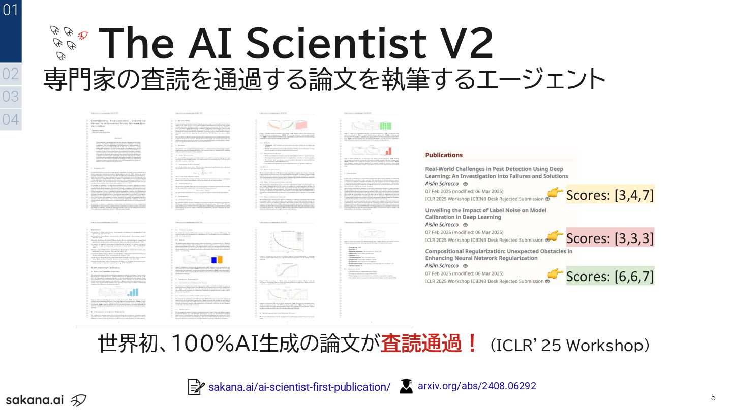 The AI Scientist V2 専門家の査読を通過する論文を執筆するエージェント 5 02 03 04 01