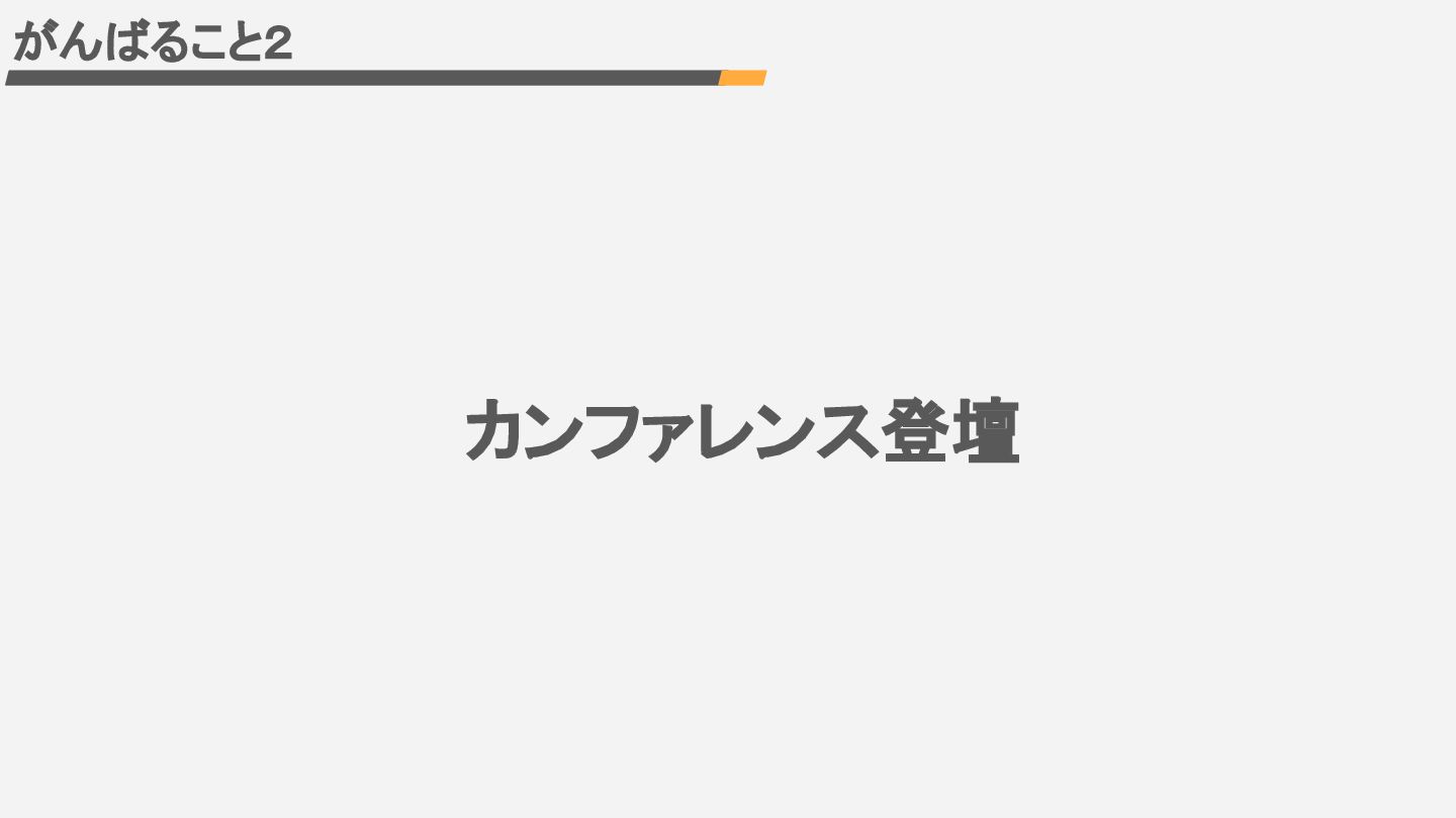 ・ みんなが面白いと思って聞いてもらえる発表に自信がなかった ・ 色々手を出しているため、一つの深いものがなかった ・ 登壇するのも運営側するとかなりありがたい 年末のカンファレンスラッシュあたりで何処か登壇したい!