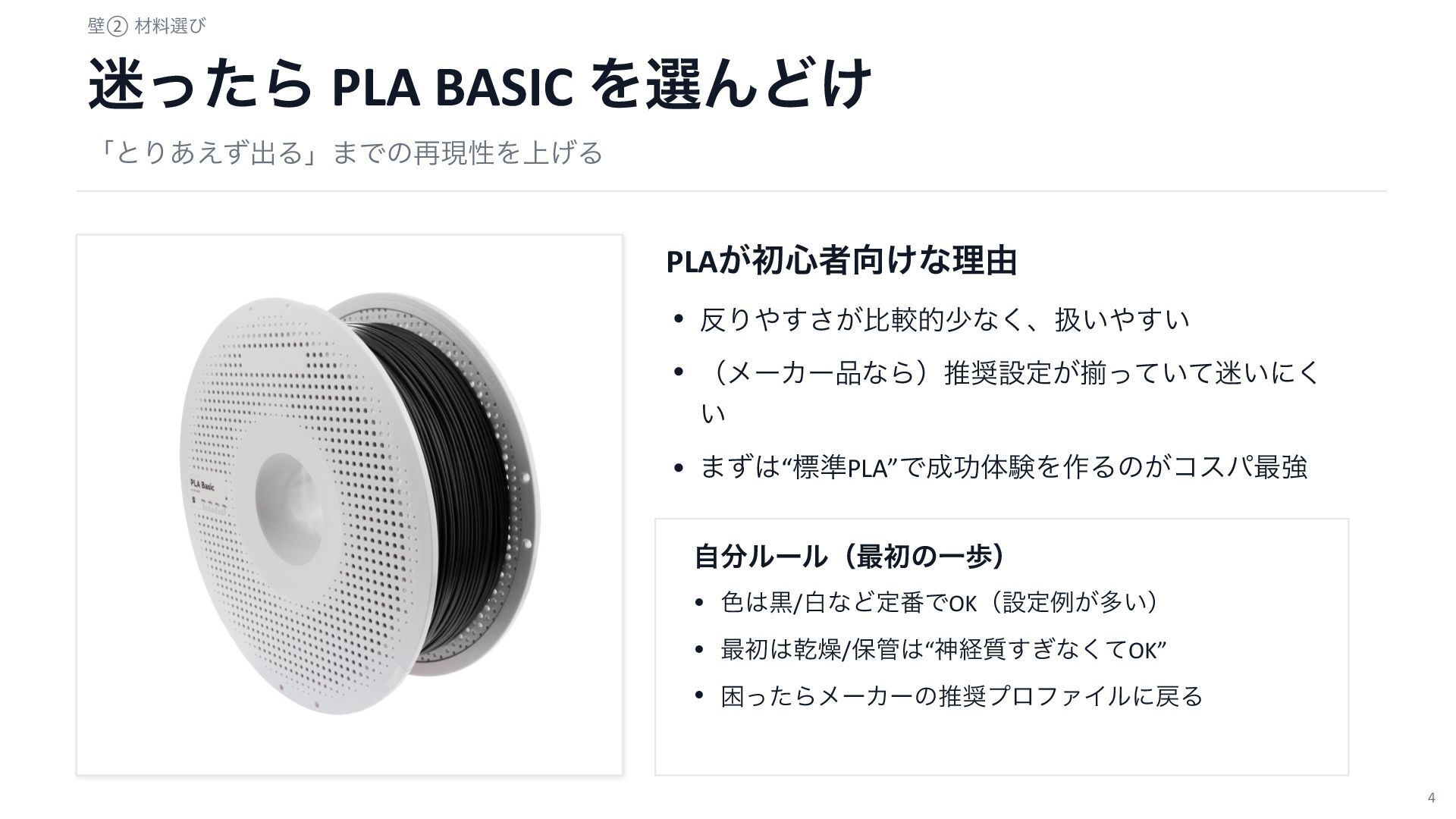 น② ࡐྉબͼ ໎ͬͨΒ PLA BASIC ΛબΜͲ͚ ʮͱΓ͋͑ͣग़Δʯ·Ͱͷ࠶ݱੑΛ্͛Δ PLA͕ॳ৺ऀ͚ͳཧ༝ • Γ͕͢͞ൺֱతগͳ͘ɺѻ͍͍͢