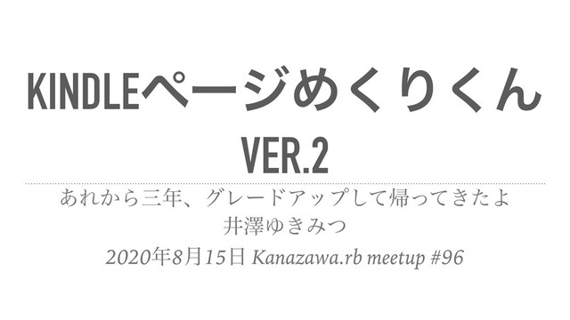 KINDLEϖʔδΊ͘Γ͘Μ VER.2 ͋Ε͔ΒࡾɺάϨʔυΞοϓͯ͠ؼ͖ͬͯͨΑ ҪᖒΏ͖Έͭ 20208݄15 Kanazawa.rb meetup #96