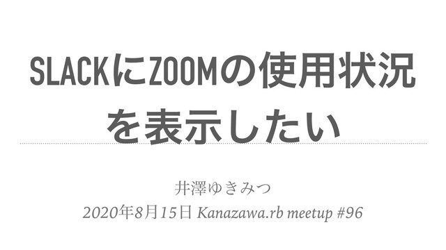 SLACKʹZOOMͷ༻ঢ়گ Λද͍ࣔͨ͠ ҪᖒΏ͖Έͭ 20208݄15 Kanazawa.rb meetup #96