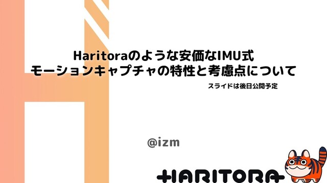 Haritoraのような安価なIMU式 モーションキャプチャの特性と考慮点について @izm スライドは後日公開予定