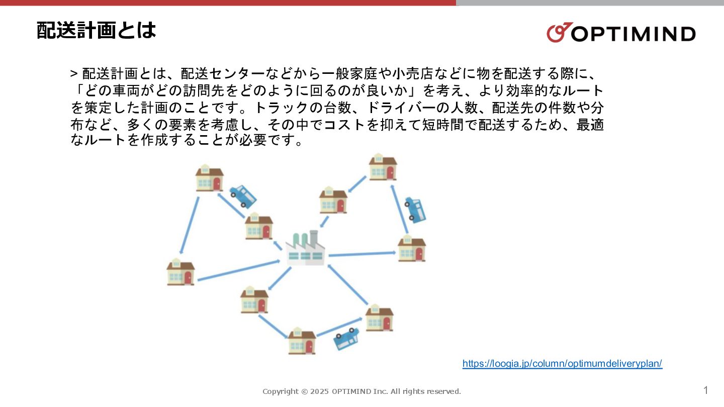 Copyright © 2025 OPTIMIND Inc. All rights reserved. 1 配送計画とは